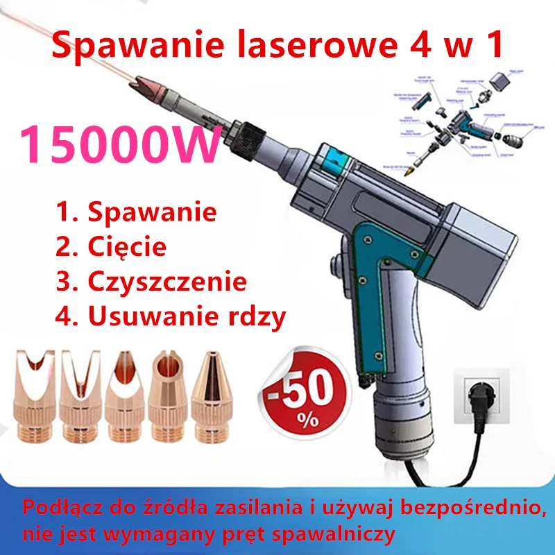 Może jednocześnie wykonywać spawanie laserowe, cięcie, czyszczenie spoin i trawienie.
